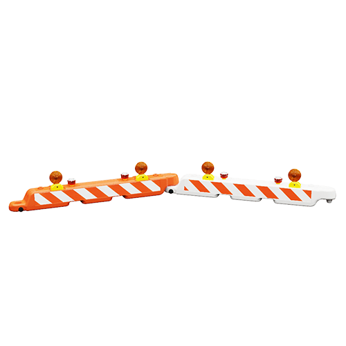Low profile interlocking barricade system used to close taxiways, runways, and delineate construction areas.