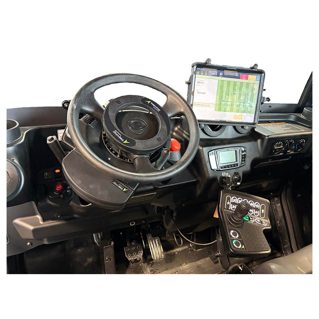 Transform your Kubota RTV into a precision-guided striper by replacing its standard steering with a GPS-enabled auto-steering system. This upgrade provides straight-line accuracy and allows for hands-free self-steering, making it ideal for both road-marking and parking lot striping projects. Even after this upgrade, the unit can still be configured in multiple ways, including options for dual paint hoppers, gravity bead kits, and a dual contractor paint gun, which is perfect for wider parking lots requiring extra range.