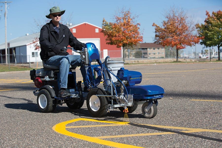 The LineLazer ES 1000 is the industry’s first electric striper, offering quiet, fume-free operation for indoor and outdoor use.
