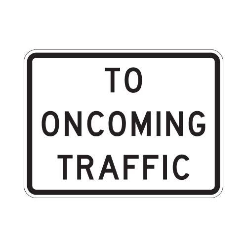 This sign is typically located under a standard “YIELD” sign to inform drivers that they should yield to cars approaching them, especially on narrow roads. It implies “let oncoming traffic go first” when going straight.