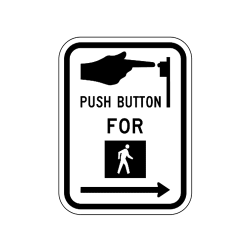 The R10-3R sign clearly states, “PUSH BUTTON FOR (Cross Signal)(Right Arrow),” leaving no room for confusion and increasing safety.