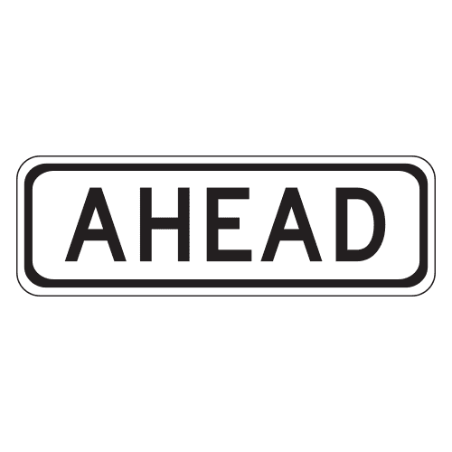 The R3-17aP “Ahead” sign is a supplemental sign mounted beneath a regulatory sign. Its purpose is to indicate that the regulation on the primary sign will be in effect ahead of the sign’s location. Think of it as a warning or notification that the rule or instruction on the main sign will apply further down the road.