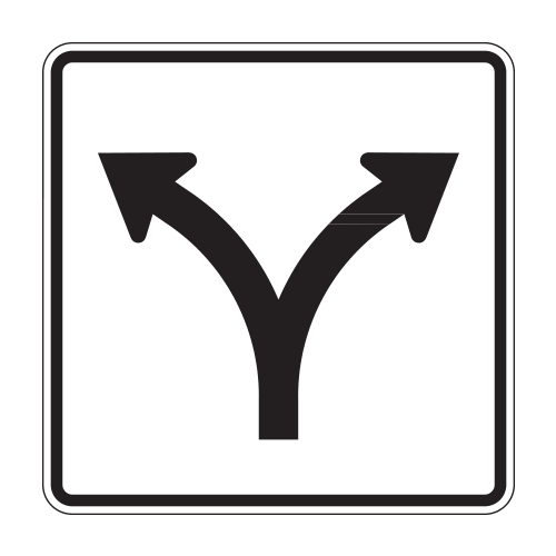 The R3-8cT sign incorporates the recognized dividing lane symbols for left and right turns, ensuring immediate understanding by all drivers.