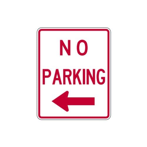 The R8-3aTL sign is essential for maintaining clear “NO PARKING” zones with a left arrow pointing towards the no parking zone.