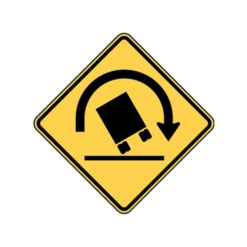 The W1-13R sign serves as a necessary beacon, alerting truckers and other motorists to potential areas where trucks may roll over ahead.