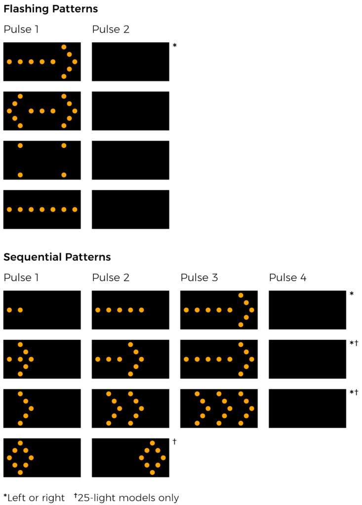 | Display | 15-light, 5 patterns, 15-light, 7 patterns, 25-light, 12 patterns |