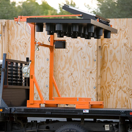 Our skid-mounted arrow boards can be easily attached to a truck bed or any stable surface. The pivoting skid models include a heavy-duty hand crank that allows you to raise the arrow board from a horizontal travel position to a vertical display position. We offer both standard height and low-profile pivoting skids to meet your needs.