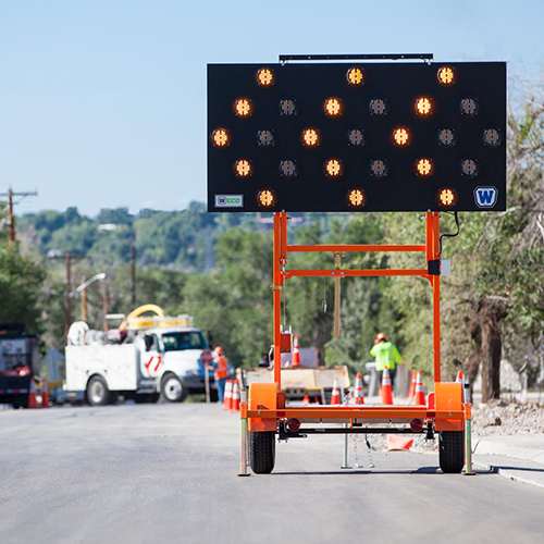 Wanco’s W|ECO arrow boards are designed with environmental sustainability in mind. They are equipped with highly efficient LED lights and sealed batteries. What sets them apart is Wanco’s exclusive LED technology, which consumes 85% less power than the LEDs used in standard arrow boards.