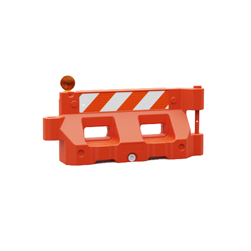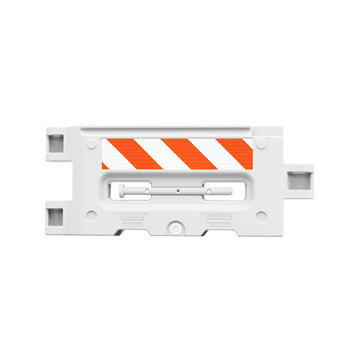 The Hydrocade is a durable channelizer that can be filled with water for additional weight. It features a unique stacking design for easy transport.